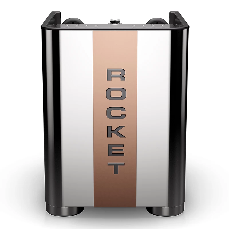 Besonders beeindruckend sind die zwölf Kreise auf beiden Seiten der Maschine, die bei der TCA nochmals weiter in ihrer Prägung bearbeitet wurden. Dadurch wirken sie noch dreidimensionaler und kommen noch besser zur Geltung. Die Rocket Appartamento TCA ist somit nicht nur ein absoluter Hingucker, sondern auch eine Maschine, die höchste Ansprüche an die Kaffeequalität erfüllt. Die vertikale Ausrichtung des Rocket Espresso-Logos auf der Rückseite der Maschine rundet das moderne Erscheinungsbild perfekt ab.