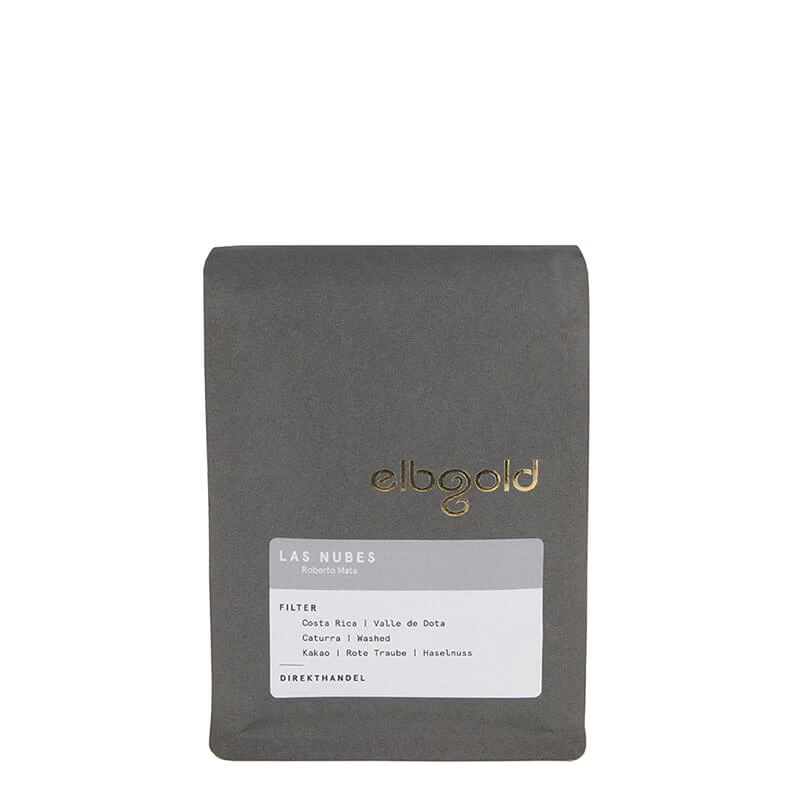 Der Filterkaffee Costa Rica Las Nubes von Elbgold besteht aus der Arabica Varietät Caturra. Der Kaffee hat eine schöne Fruchtnote von roten Trauben. Zudem geben Kakao, Haselnuss und Nougat ein tolles Aromentrio.