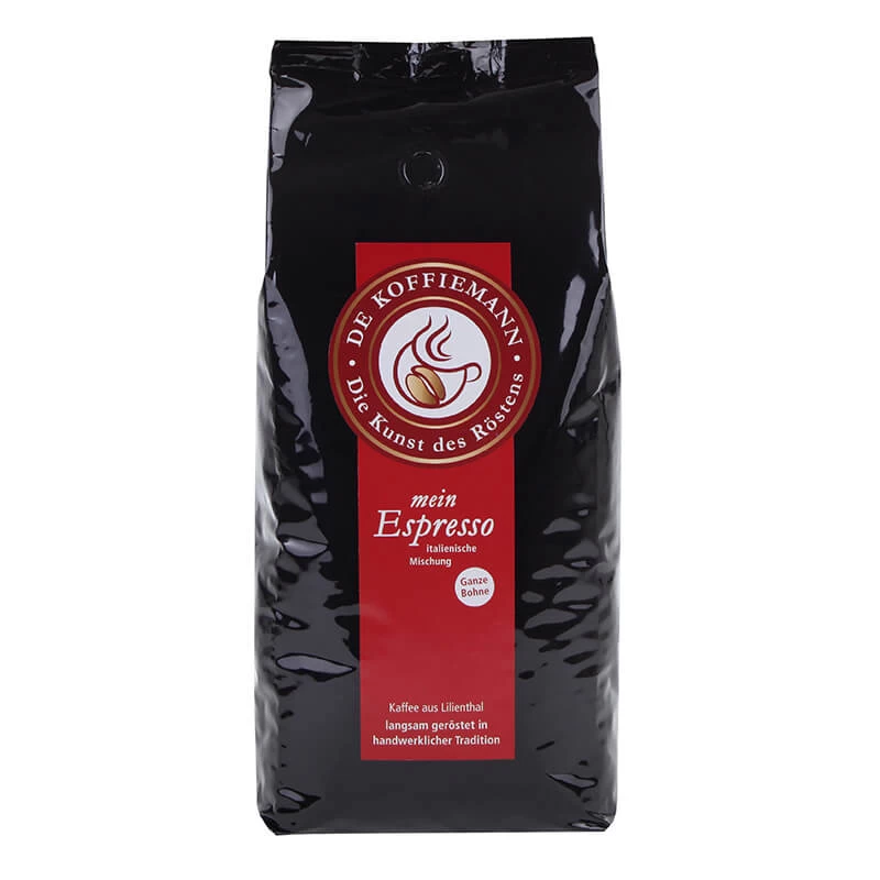Die italienische Mischung von Mein Espresso besteht aus 70% Arabica- und 30% Robusta-Bohnen, die aus den Hochlandregionen Zentral- und Südamerikas stammen. In einem schonenden Röstverfahren werden die Kaffeebohnen langsam geröstet und erhalten so allmählich ihr volles und intensives Aroma. Durch die dunkle Röstung der Bohnen erhält der Espresso von De Koffiemann seine besonders kräftige Würze. Sein intensiver vollmundiger Geschmack, gepaart mit einer leichten Note aus Schokolade, macht Mein Espresso von De Koffiemann zum perfekten Begleiter am Morgen.